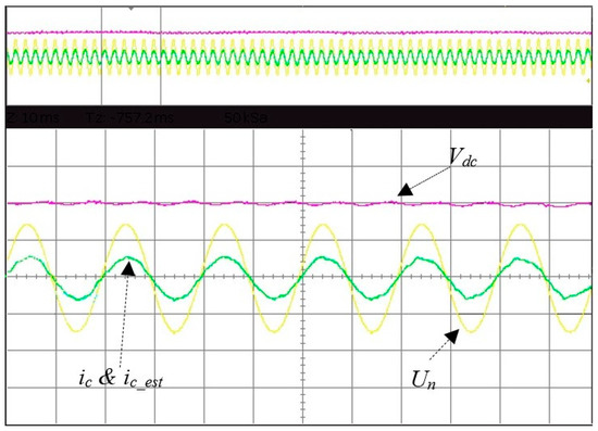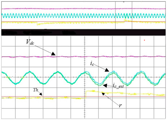 In the inner loop control, a PR controller is employed to regulate the output current of the rectifier. The PR controller is designed to track the reference current signal and suppress any harmonics that may be present in the system. This is done by decomposing the current signal into its fundamental and harmonic components and applying the proportional resonant controller to the harmonic component to eliminate it. The result depicted in Figure 4 demonstrates the effectiveness of the adopted controller in normal operation. The trace denoted Vdc represents the DC-link voltage, the trace Un is the input grid voltage signal, ic represents the actual signal of the current from the sensor, and the trace ic_est represents the estimated current of the actual current and is from the observer. The trace r and Th represent the residual signal and the detection threshold, respectively.