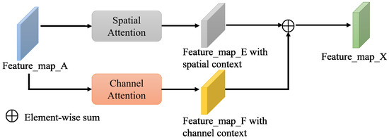 where is a scale parameter initialized to zero and gaining more weight through gradual learning. It can be seen from Equation (2) that the final spatial attention is the weighted sum of all the spatial attention local features and the original features. Compared with the original features, it aggregates the contexts of the target in space.