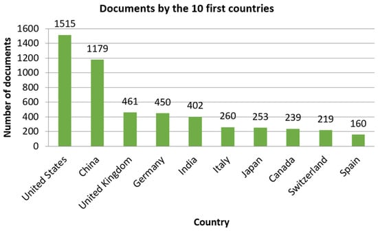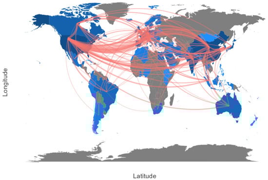 Below are the first ten countries that have published articles on QML, with the United States and China singling out almost 50% (Figure 2), and finally, all countries that published articles from 2000 to 2023 (Figure 3).
