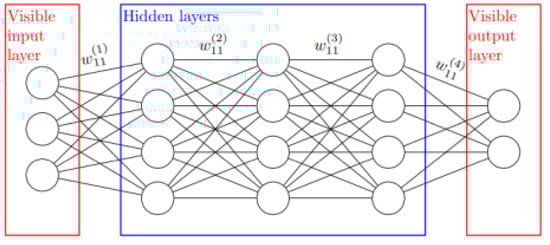 Quantum machine learning algorithms are applied in the domains of Supervised Learning, Unsupervised Learning, and Reinforcement Learning (RL). In Supervised Learning, patterns are learned by observing training data, whereas in Unsupervised Learning, the structure is recognized from a set of grouped data. In RL, the algorithm learns from direct interaction with the environment [64]. Additionally, a technique called deep-supervised learning trains QNN to recognize patterns and images. It is a feed-forward network that employs circuits with qubits (based on neurons) and rotational gates (proportional to weights). On the other hand, Classical deep learning (CDL) uses complex multi-level neural networks, and a deep learning algorithm constructs multiple levels of abstraction from large datasets. Boltzmann machines (BM) are a well-known class of deep-learning networks where the nodes of graphs and connections are established by the Gibbs distribution [65] (Figure 6). The method aims to minimize the maximum distribution probability using the gradient descent method, which ensures consistency between the model and the training data [66].
