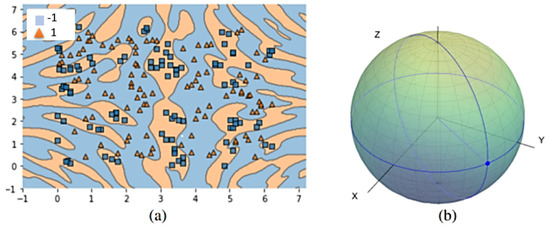 (a) QSVM decision boundary (b) The Bloch sphere [75].