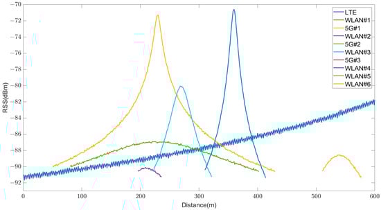 where q is the number of RSS values taken, is the transmit power, is the power loss at the reference point, is the path loss exponent, is the distance between the AP and a reference point, and is a zero-mean Gaussian random variable caused by shadow fading. The difference between RSS signals found by taking a single RSS sample and the mean value of multiple RSS samples is shown in Figure 5. The RSS signal using the mean value is smoother than the RSS signals shown in Figure 6. This could minimize the ping-pong effect in heterogeneous networks.