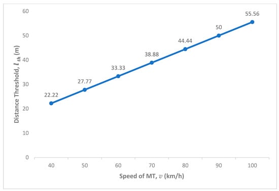 The distance threshold, , is the product of the MT velocity (v) and dwelling time threshold. The two seconds dwelling time threshold for different MT velocities yields different travelling distance thresholds, as indicated in Figure 7. The is increased proportionally with the MT velocity. Table 3 displays the trajectory distance within each network based on the network layout in Figure 4. The predicted distance is the distance calculated by the dwelling time algorithm. The Table 3 results for WLAN#1 and 5G#3 have more than 10% error due to the short actual travel distance when less than 20 m. However, the two networks’ actual travel distances and prediction travel distances have approximately values.