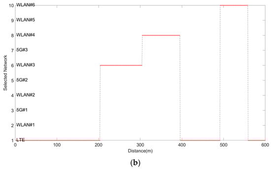 The quality of candidate, (), is evaluated based on the measured , and monetary cost, , values by using Equation (4), where the network with the highest Q value is selected as the best network.