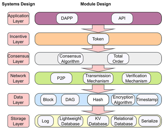 Through the analysis of existing DAG-based distributed ledger solutions, a clear and concise system framework structure is designed. The architecture design of the DAG-based distributed ledger is presented in Figure 1 below, where the lower layers provide services to the upper layers, and the upper layers extend the functionality based on the lower layers.