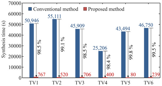 Comparison of synthesis time between the conventional and proposed methods, which shows the substantial reduction in synthesis time with the proposed method.