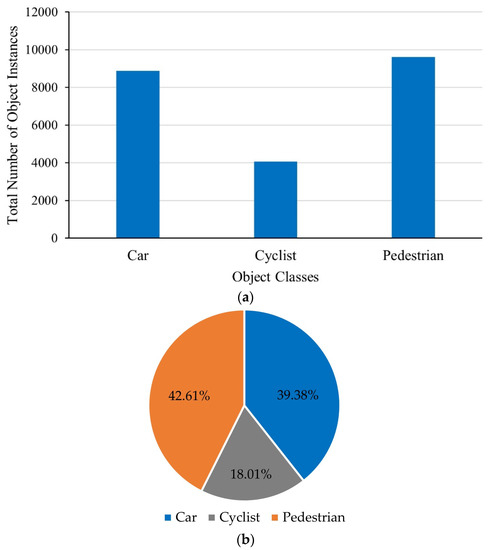 (a) Statistics regarding annotated cuboids by classes in SimoSet. (b) Proportion statistics of annotated cuboids by classes in SimoSet.