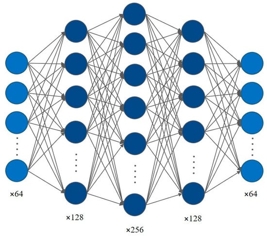 During our experiments, we split the DNN into several blocks, with each block consisting of an internal bottleneck network structure where each layer is composed of 64, 64×2, 64×4, 64×2, and 64 units. When data enter a bottleneck DNN block, they would first be up-dimensioned and then down-dimensioned. Compared with DNNs, which have a consistent number of neurons in each of their hidden layers, the up-dimension operation can combine different types of features to improve the discrimination ability of the DNN model. In addition, the down-dimension operation can remove features with low differentiation degrees. In general, the dimensionality reduction and dimensionality enhancement operations enable the bottleneck DNN to learn more intrinsic useful features and exclude the interference of useless features. The structure of a bottleneck DNN block is shown as in Figure 6: