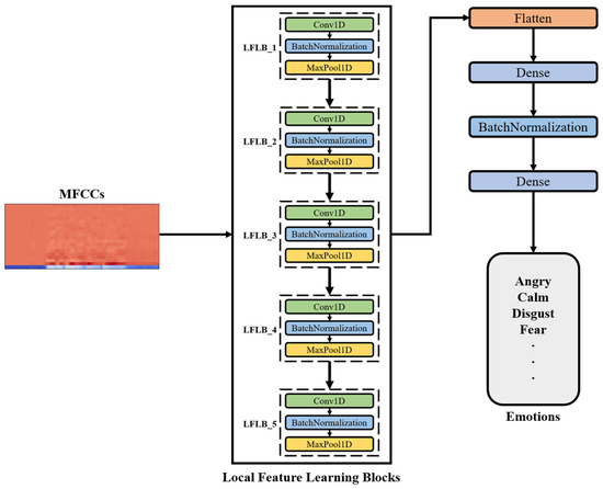 | LFLB 5 | Conv1D BatchNormalization MaxPooling1D | filters = 64, kernel_size = 3, strides = 1 pool_size = 3, strides = 2 |