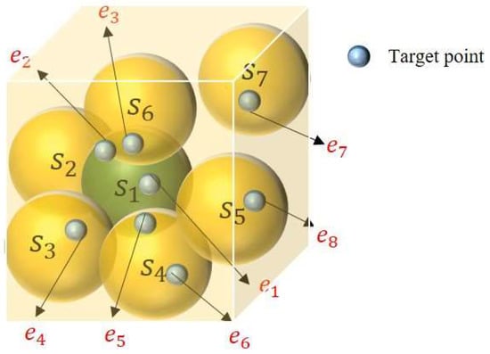 target points within each cell, and the coverage ratio of each cell is calculated to determine whether there are coverage holes within each cell, and thus the position of the coverage blind zones. A sensor node can cover multiple target points, while the same target point is also covered by multiple sensor nodes, as illustrated in