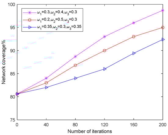 . By observing the changes in network coverage brought about by different weighting parameters at different numbers of iterations, the analysis of