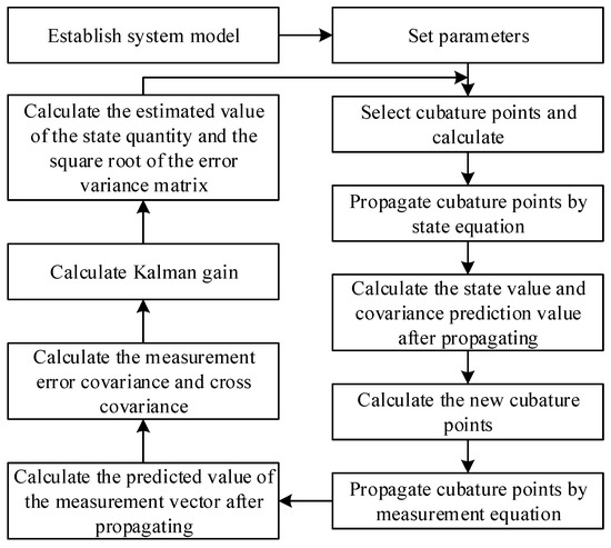 The estimation process of CKF includes two parts: time update and measurement update. The main process is shown in Figure 3.