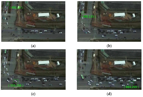 Vehicle positions of some sampling tracking points: (a) 0 s.; (b) 10 s.; (c) 20 s.; (d) 30 s.