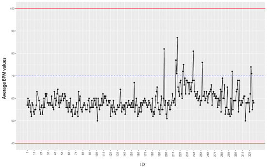 We were in contact with respondent ID-11 throughout the development of this research. As a result, we had the opportunity to present his results to him in person and receive other relevant information to interpret our results better. In Figure 2, we can see the average BPM values broken down by specific dates, where we are most interested in the break in mid-March 2021. We have distorted the data and plotted it from the date 19 November 2020 to 2 June 2021 to make the results more visible. Based on the feedback, we found that the respondent had a medical condition between 19 November 2020 and 2 March 2021 with problems that were the reason for his limited physical activity. Values changed daily, and up to 65% increase in average heart rate compared to the previous value. The respondent did not suffer from depression directly. However, he did have a mentally challenging period in the interval when he had health problems. Based on his information, we can confirm that exercise significantly impacts an individual’s mental health. The World Health Organization (WHO) defined health in 1948 as a state of complete physical, mental, and social well-being and not merely the absence of disease or infirmity [38]. Using observational data, we can say that movement alone positively impacts an individual’s mental health. This somehow contributes to the confirmation of Hypothesis 1. Heart rate can increase significantly even from simple activity such as walking. In this case, the respondent’s inclusion of the Walking Outdoors exercise in his activity resulted in a significant increase in his heart rate compared to the previous period. When you walk, your muscles require more oxygen to work, and your heart has to pump more blood to deliver oxygen to those muscles. This increased demand for oxygen and blood results in an increase in heart rate.