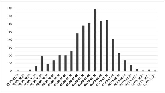 We can determine whether the respondent gets the optimal amount of sleep based on sleep duration alone. However, we do not know the record incidence at other intervals. In Table 6, we list the time interfaces that contain records from a given respondent. We have shown the percentage of occurrence of records in the given intervals.