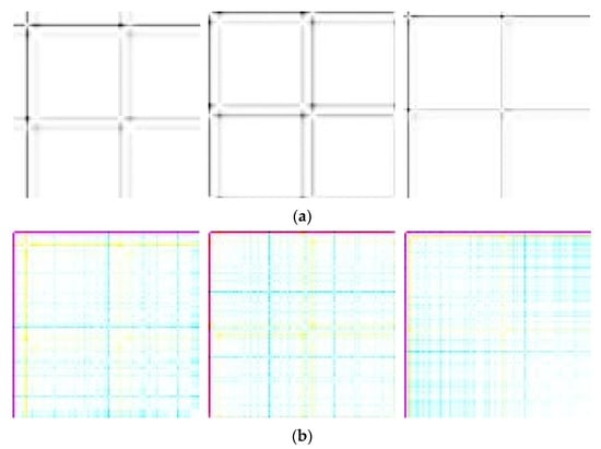 The pixel matrix of the B channel is equivalent to the Gramian matrix in the general GAF, in which the temporal feature of the raw data is contained. The amplitude feature is contained in the pixel matrix of the G channel, and the phase feature is contained in the pixel matrix of the R channel. Finally, by merging the three channels, the iGAF image that combines the temporal feature, the amplitude feature, and the phase feature extracted from the DGM, the AGM, and the PGM, is generated. Here, two sets of images generated by GAF and iGAF are shown in Figure 2 for comparison. It can be seen that the feature differentiation between iGAF images of the three appliances increases.