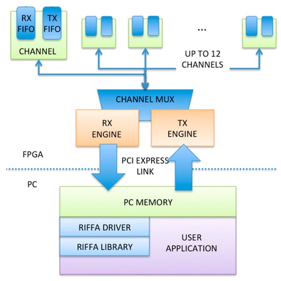 - Jacobsen, M.; Richmond, D.; Hogains, M.; Kastner, R. RIFFA 2.1: A reusable integration framework for FPGA accelerators. ACM Trans. Reconfigurable Technol. Syst. 2015, 8, 1–23. [Google Scholar] [CrossRef]