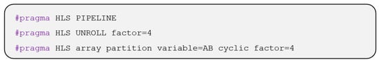- SDAccel Development Environment Help for 2019.1. 2019. Available online: https://www.xilinx.com/html_docs/xilinx2019_1/sdaccel_doc/hls-pragmas-okr1504034364623.html#fde1504034360078 (accessed on 14 April 2023).
