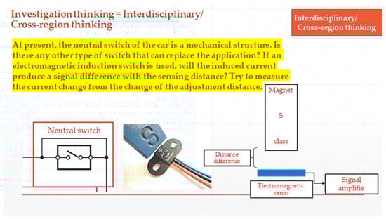 Instructional activities and materials were designed and planned in the way of synchro-tie, in which after the instructor explained the issues about circuit application, energy issues and safety, students would be able to think about the concrete concept and practical connection first; then, they could observe related information in vehicle maintenance and repair cases or experiences as well as in industrial development. In addition, concerning the instruction hours, issue-integrating depth and student’s acceptable skills development during the instruction activities period, students were guided to implement situational induction, problems investigation and interdisciplinary/cross-region thinking. The instruction process is shown in Figure 12, while the competence-oriented instruction materials are shown in Figure 13, Figure 14 and Figure 15.