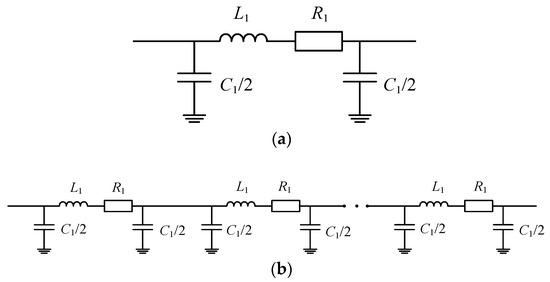 In order to obtain the impedance of multiple π-type equivalent circuits in series, as shown in Figure 5b, first, it is necessary to calculate the equivalent impedance of a single π-type unit as: