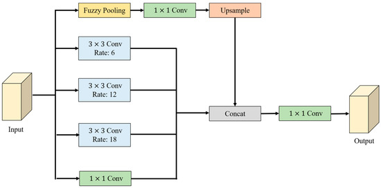 Fuzzy ASPP combined ASPP with fuzzy theory and was placed between the encoder and decoder of the two butterfly-type networks. Figure 2 shows the structure of Fuzzy ASPP.