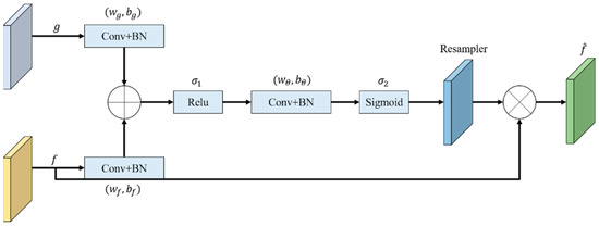 In the skip connections, an attention mechanism was used to eliminate noisy and irrelevant responses by using features extracted from coarser feature maps. It effectively reduced noise and unnecessary features in the model and improved its performance and accuracy. Figure 3 shows the structure of the attention gate.
