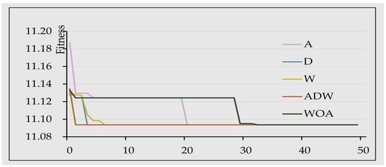 The WOA is a three-stage optimization method inspired by the humpback whale’s strategy for finding food [,].