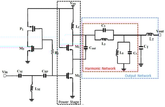 - Liao, H.Y.; Chen, J.H.; Chiou, H.K.; Wang, S.M. Harmonic control network for 2.6 GHz CMOS class-F power amplifier. In Proceedings of the 2009 IEEE International Symposium on Circuits and Systems, Taipei, Taiwan, 24–27 May 2009; pp. 1321–1324. [Google Scholar]
