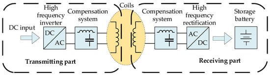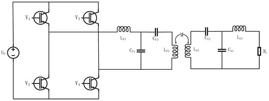 Wireless power transmission has become more extensively employed for its advantages (e.g., safety and convenience) over the past few years. Magnetic coupling resonant wireless power transmission uses the principle of electromagnetic induction to transmit power from the grid end to the mobile end [1,2,3]. Compared with conventional contact charging, this charging method is safer, more reliable, more flexible, and more conducive to maintenance. Magnetic induction coupling wireless power transmission displays a certain gap between the two coils, the main magnetic circuit exhibits a significant reluctance, and the system requires considerable reactive power, such that the capacity of the device and the loss of the system will be increased. As a result, the efficiency of the system will be reduced. To avoid the above-mentioned hazard, a compensation network is generally introduced to the primary and secondary terminals of the magnetically coupled resonant wireless power transfer system to optimize the power factor and reduce the ability of the switching device to withstand current.