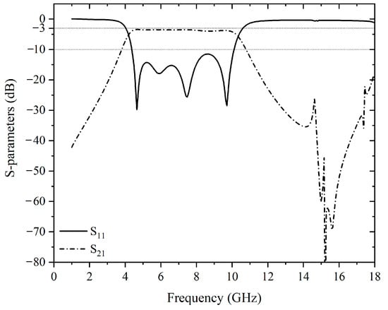 - Sun, S.; Zhu, L. Capacitive-ended interdigital coupled lines for UWB bandpass filters with improved out-of-band performances. IEEE Microw. Wirel. Compon. Lett. 2006, 16, 440–442. [Google Scholar] [CrossRef]
