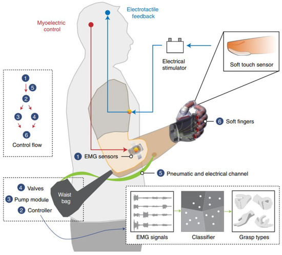 - Gu, G.Y.; Zhang, N.B.; Xu, H.P.; Lin, S.T.; Yu, Y.; Chai, G.H.; Ge, L.; Yang, H.L.; Shao, Q.W.; Sheng, X.J.; et al. A soft neuroprosthetic hand providing simultaneous myoelectric control and tactile feedback. Nat. Biomed. Eng. 2021, 7, 589–598. [Google Scholar] [CrossRef] [PubMed]
