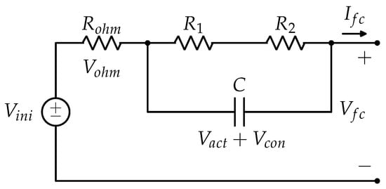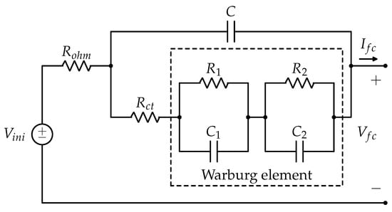 - Buasri, P.; Salameh, Z. An electrical circuit model for a proton exchange membrane fuel cell (pemfc). In Proceedings of the 2006 IEEE Power Engineering Society General Meeting, Montreal, QC, Canada, 18–22 June 2006; p. 6. [Google Scholar] [CrossRef]