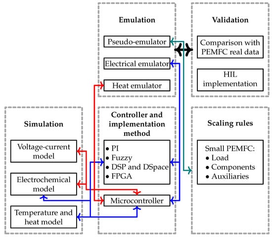 - García-Vite, P.M.; Reyes-García, B.L.; Valdez-Hernández, C.L.; Martínez-Salazar, A. Microcontroller-based emulation of a pem fuel cell. Int. J. Hydrogen Energy 2020, 45, 13767–13776. [Google Scholar] [CrossRef]