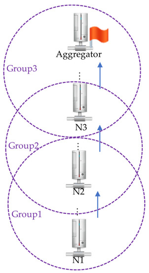In WSNs, secure aggregation methods are widely employed in inference attack protection [31] and smart grids [32]. Secure aggregation has been employed in federated learning systems, and the results show that the method needs fewer training iterations and is flexible [31]. Regarding data aggregation, Secure Information Aggregation (SIA) [33,34] targets a flatter WSN hierarchy with only one data aggregator to which all sensor nodes send data. In addition to aggregating the received data, the aggregator uses the hash tree [35,36,37] to convert individual data to an authentication code. As SIA considers only one data aggregator, it is unsuitable for large-scale network deployment. Some studies have been conducted to improve the computation efficiency of aggregation methods [12,37,38,39,40,41]. The turbo-aggregate method achieves O(nLogn) for a secure aggregation in a network with n users, and it can speed up the network’s dispatching efficiency [37].