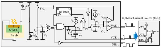 - Singh, P.R.; Liu, W.; Sivaprakasam, M.; Humayun, M.S.; Weiland, J.D. A Matched Biphasic Microstimulator for an Implantable Retinal Prosthetic Device. In Proceedings of the 2004 IEEE International Symposium on Circuits and Systems (ISCAS), Vancouver, BC, Canada, 23–26 May 2004; Volume 4, p. IV–1. [Google Scholar]