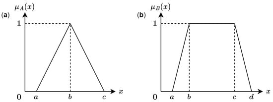 (a) Triangular membership function and (b) trapezoidal membership function.
