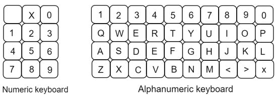 The Fuzzification screen has some options and features. Figure 11 shows the GUI of Fuzzification. In this screen, there are nine options, which are explained bellow. (1) the first thing to do is add an MF, the first step is to select the MF type; (2) put the parameters of the MFs, three for the triangular MF and four for the trapezoidal MF (see Figure 1); (3) when the user touches the textbox a numeric keyboard will appear, this tool is used to make it easier add data to the FIS. After that, the user can add a name for the MF in option 3; an alphanumeric keyboard appears in this part, as shown in Figure 12. Both keyboards are programmed to be used in other parts of the FIS when the user needs to capture a name or numeric label; (4) this option is to add the MF to the FIS; (5) this option is to select between input or output of the FIS; (6) the viewfinder is to see the whole discourse, the type of MF and their parameters. In addition, by adding option (5) it is possible to change between inputs and output of the FIS; (7) this option is to update the parameters and type of MFs; (8) it is used to save the parameters of the Fuzzification stage; and (9) to close the Fuzzification stage and return to the main menu.
