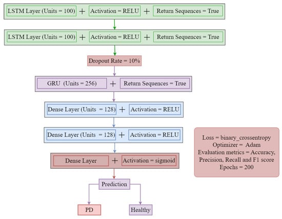 APA StyleRehman, A., Saba, T., Mujahid, M., Alamri, F. S., & ElHakim, N. (2023). Parkinson’s Disease Detection Using Hybrid LSTM-GRU Deep Learning Model. Electronics, 12(13), 2856. https://doi.org/10.3390/electronics12132856