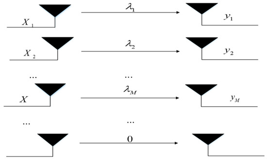 where represents the signal power of the mth user on the kth parallel channel, the diagonal element of represents the channel fading coefficient, and represents the power of additive white Gaussian noise.