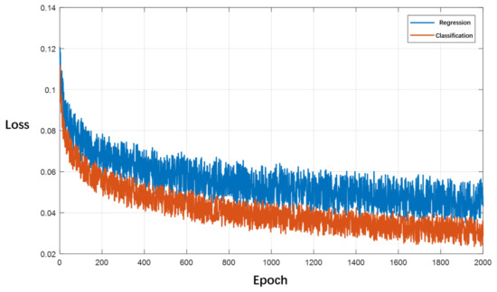 The regression and classification loss value curve in VSTDR-2023 dataset.