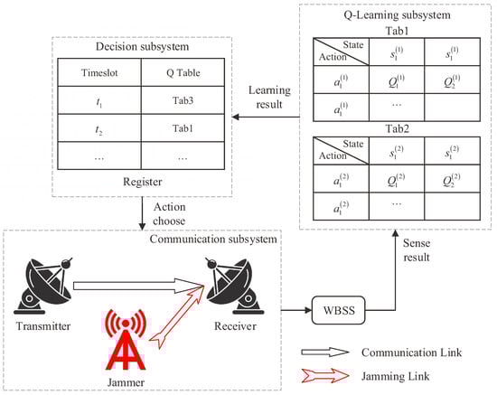 The communication system components are shown in Figure 1. The whole system includes three subsystems, which are communication subsystem, QL subsystem, and decision subsystem. To facilitate the research, the following assumptions are made [1,9]: