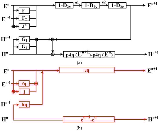 where the coefficients can be given as , , , and . Magnetic components can be obtained according to a similar procedure. It can be observed from Equation (22) that the components at the time step of n + 1 exists on both sides of the equations, including the magnetic components and polarization current density. In order to alleviate such condition, components at the time step n + 1 are substituted into Equation (22) as