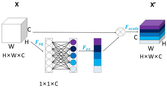 and are used to represent the two fully connected layers within the SE module. denotes reweighting, which is also known as scaling operation. It restores the data of 1 × 1 × C with weight acquisition into H × W × C, where each channel has been weighted to enhance deep learning network training effectiveness.