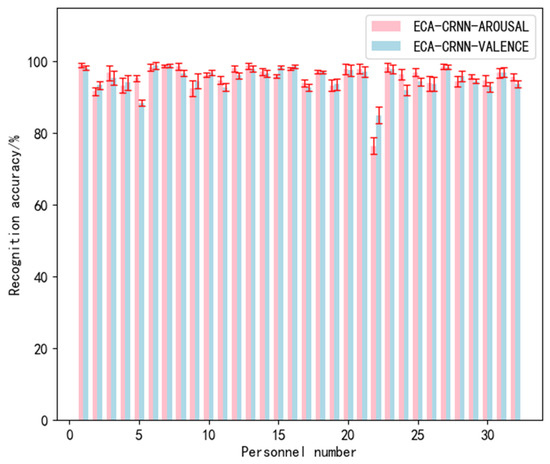 The recognition accuracy and standard deviation of valence and arousal obtained during the experiment are shown in Figure 11, Figure 12 and Figure 13: