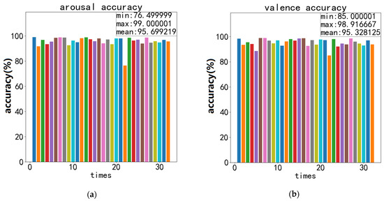 Recordings of ECA-CRNN’s best recognition accuracy on DEAP: (a) accuracy of arousal; (b) accuracy of valence.