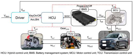 As shown in Figure 2, this section establishes a forward vehicle simulation model using quasi-static and dynamic modeling techniques. To construct this high-fidelity simulation platform, actual vehicle parameters, laboratory experiment data of power components, and the operation mechanism of HCU are all considered. The primary vehicle parameters are listed in Table 1.