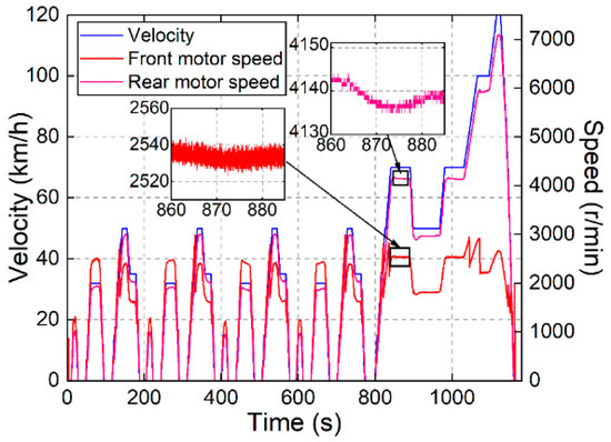 - The experimental results confirm that compared with the single-motor drive strategy, the multi-objective real-time optimal strategy can effectively improve energy efficiency by 8.74% and 4.88% under NEDC and WLTC, respectively, as well as provide excellent dynamic performance and comfort.