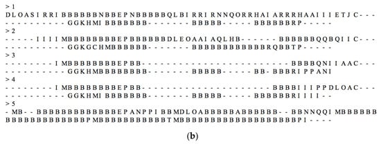 - Eddy, S.R.; The HMMER Development Team. HMMER User’s Guide: Biological Sequence Analysis Using Profile Hidden Markov Models; Howard Hughes Medical Institute: Chevy Chase, MD, USA, 2018; pp. 1–227. [Google Scholar]
