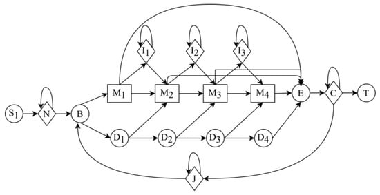 - Krogh, A.; Brown, M.; Mian, I.S.; Sjolander, K.; Haussler, D. Hidden Markov Models in computational biology: Applications to protein modeling. J. Mol. Biol. 1994, 235, 1501–1531. [Google Scholar] [CrossRef] [PubMed]