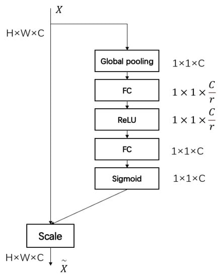 36] can determine the importance of each feature channel through self-learning, assign corresponding weights to the channels, increase the learning of target information, and ignore some interference information. The SE network is shown in